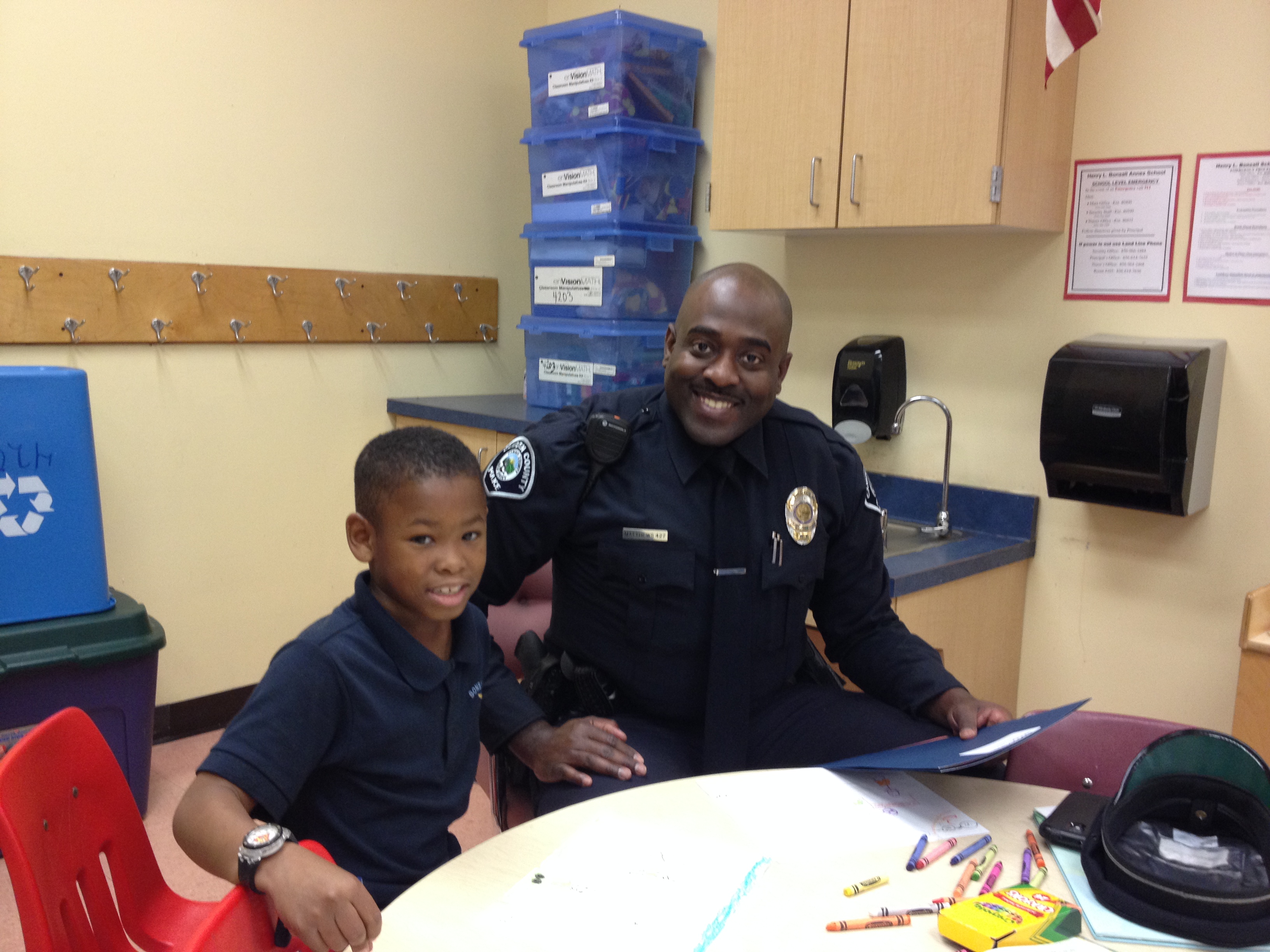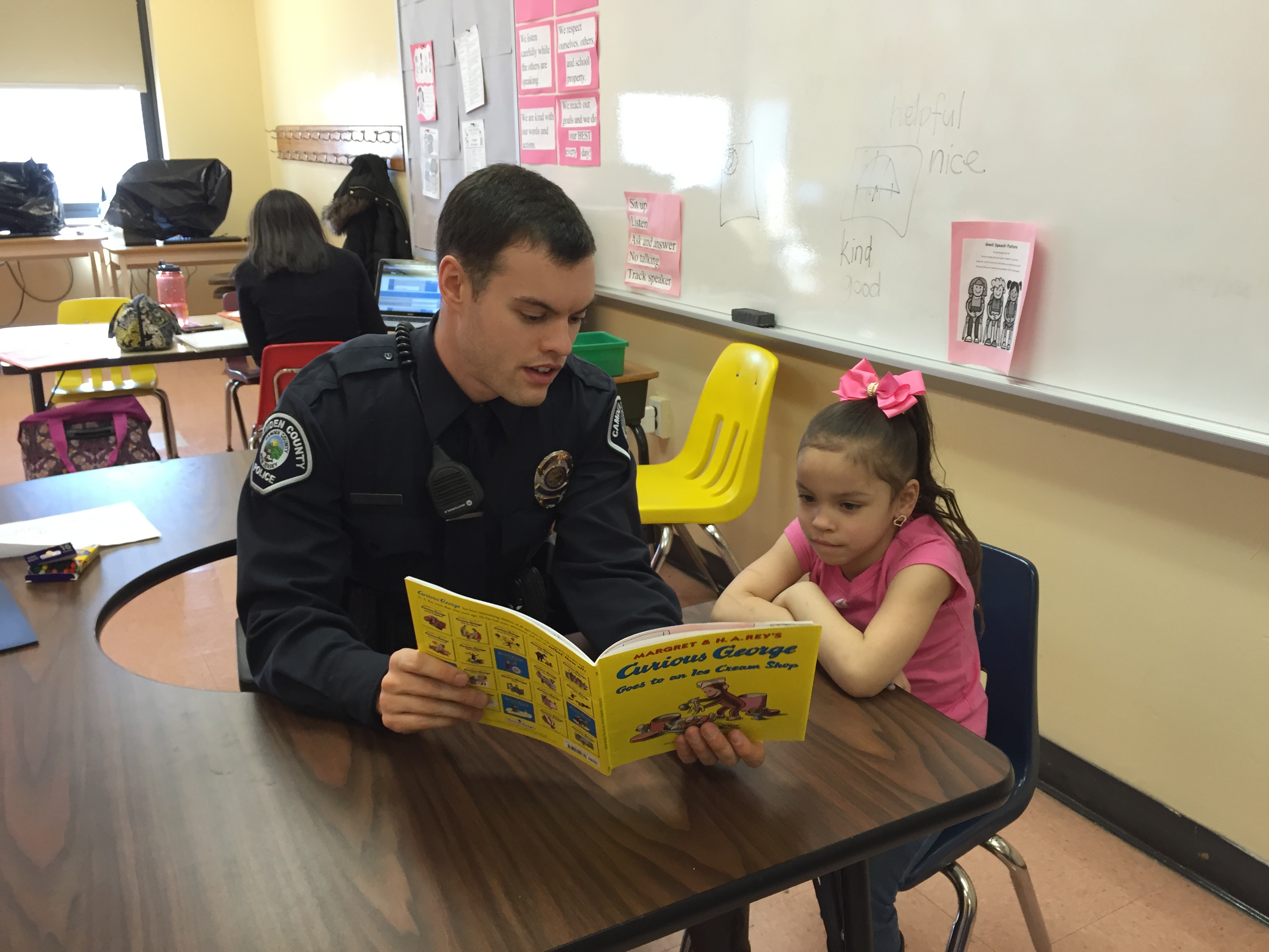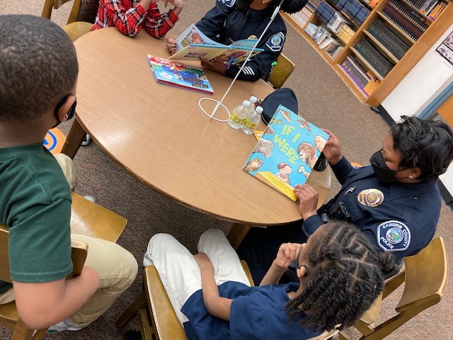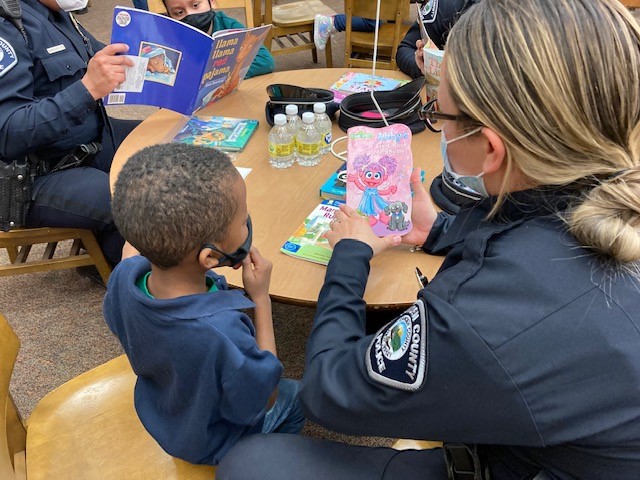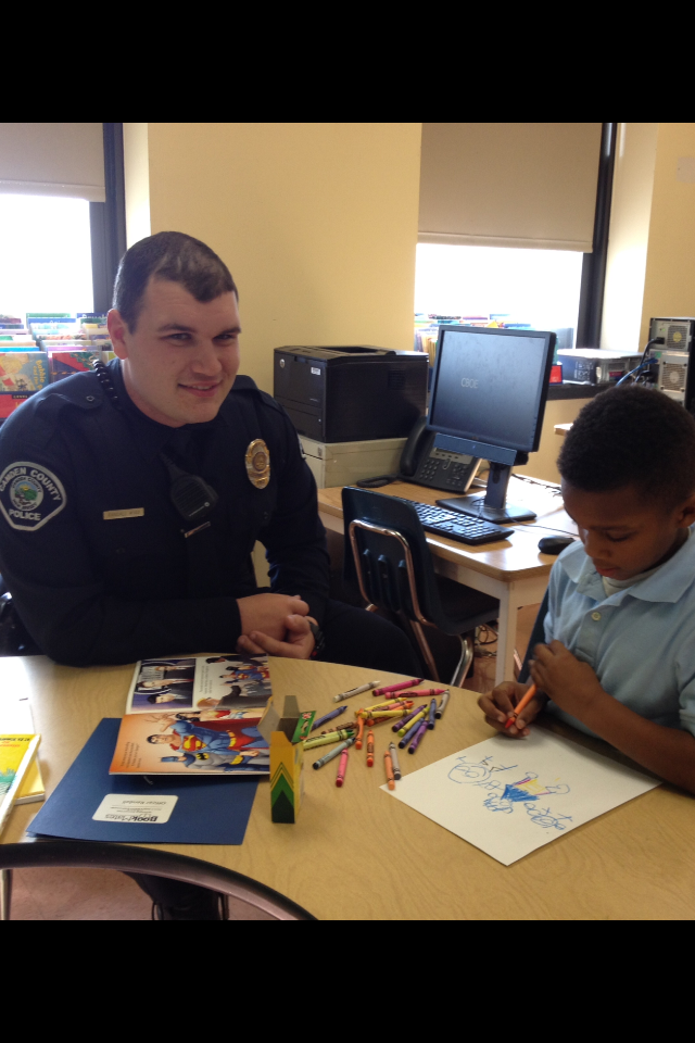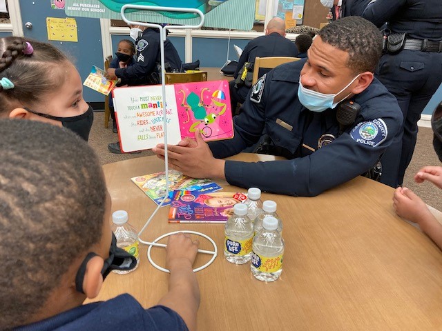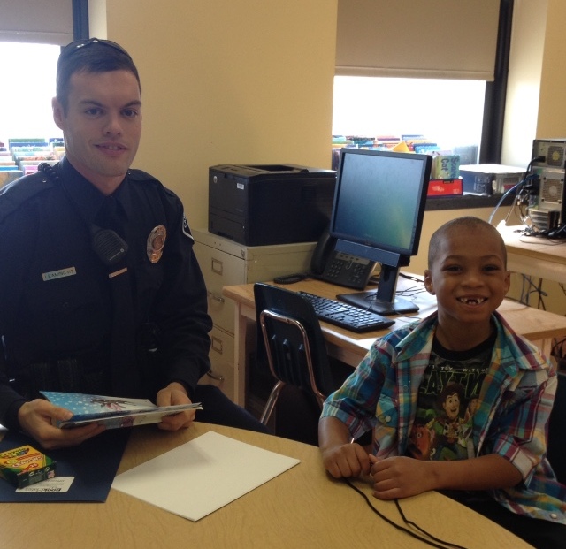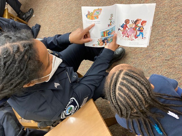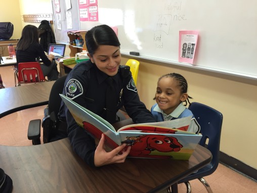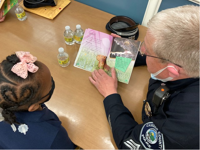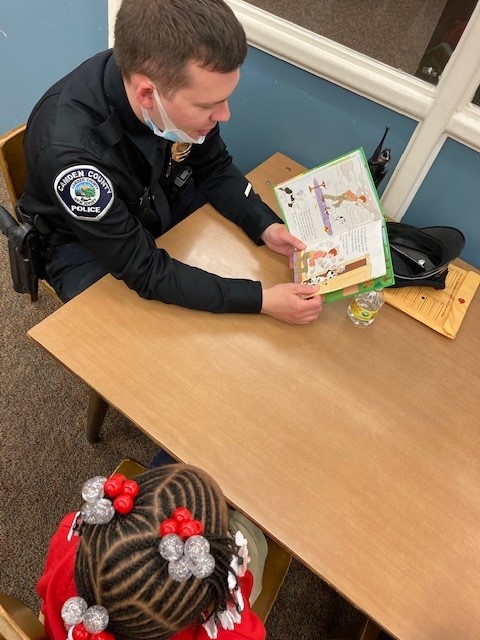 Camden County Officer Gabrielle Camacho reads to Joseph, her BookMate at Bonsall Elementary School in Camden.