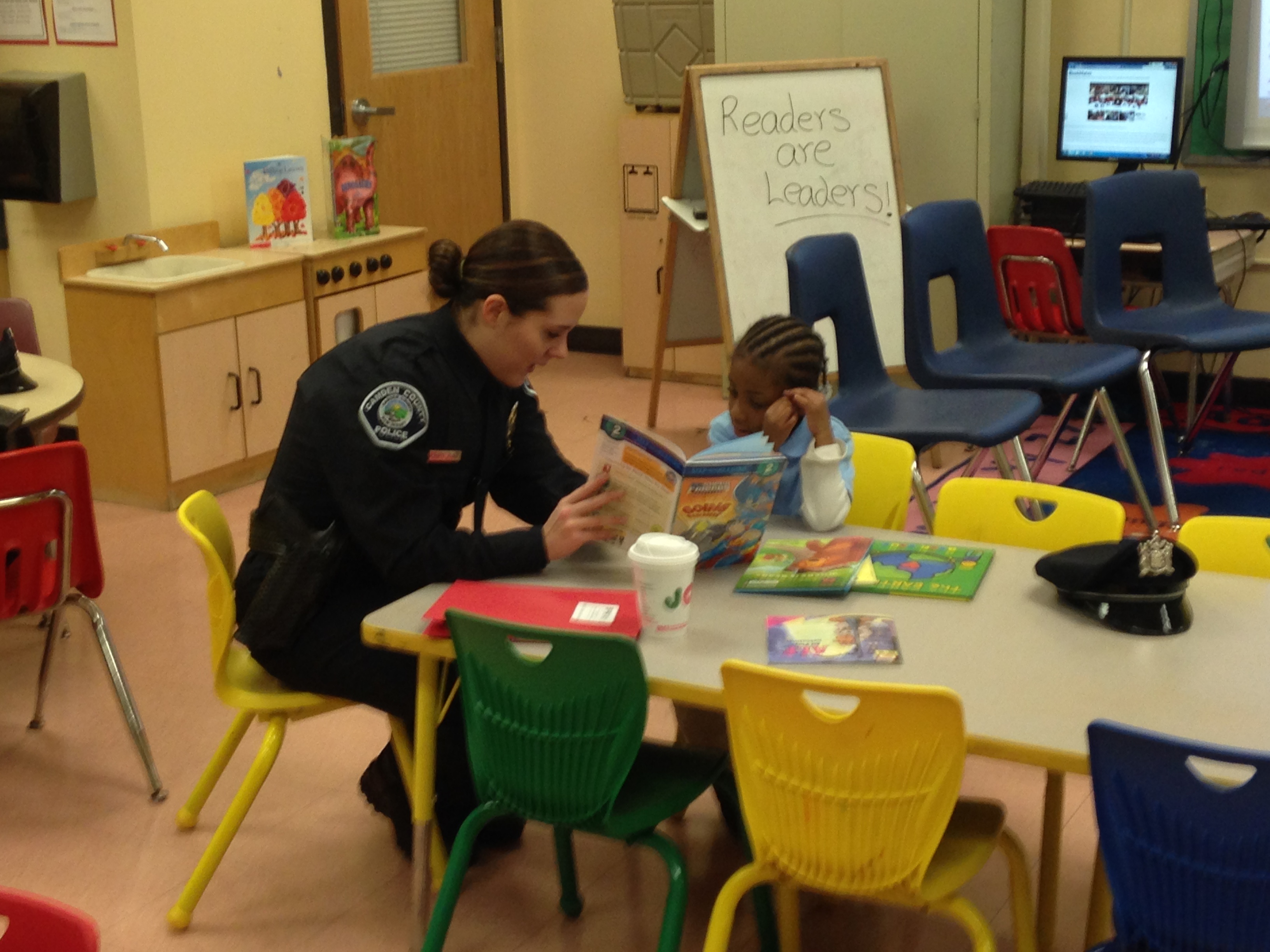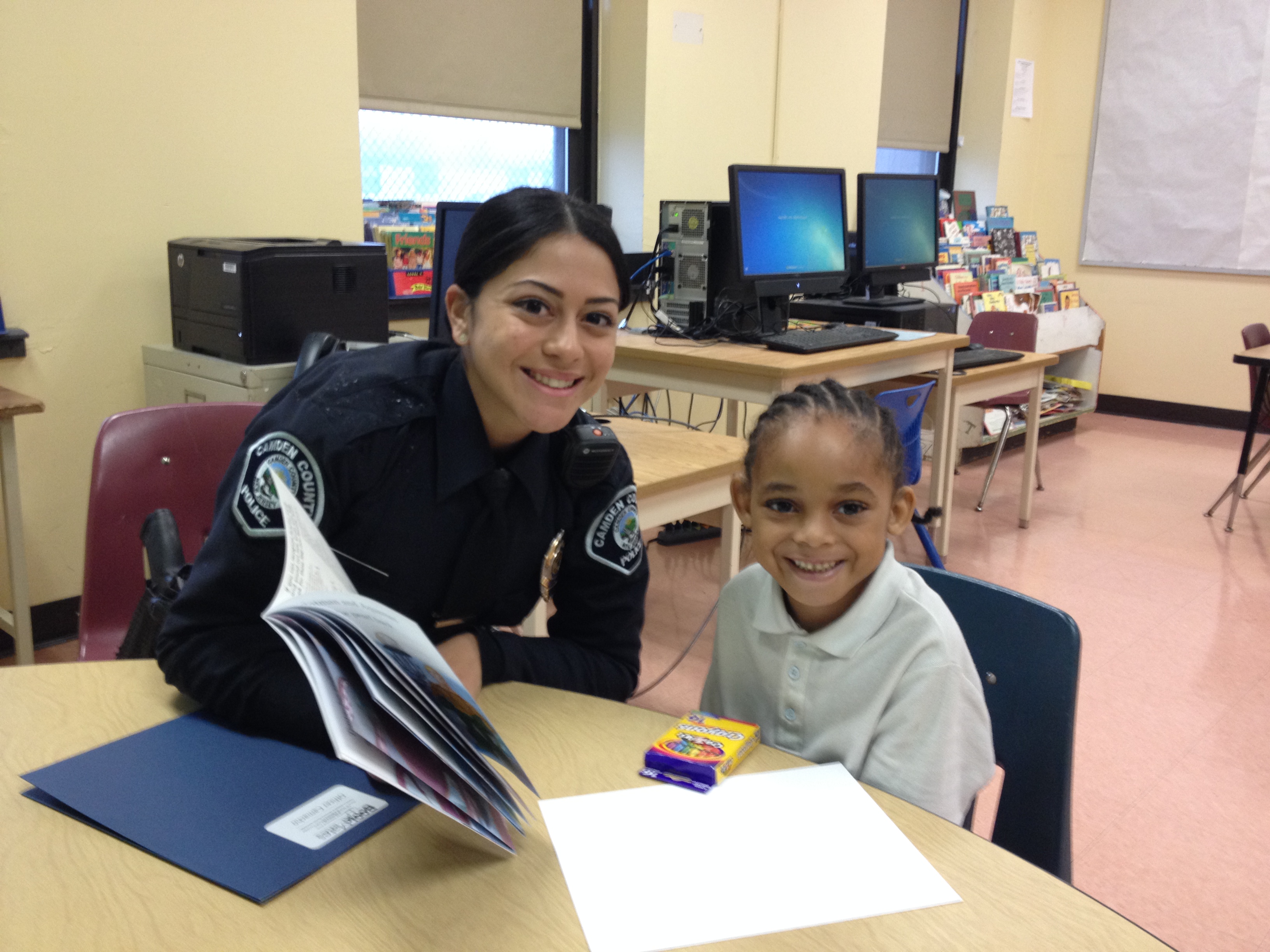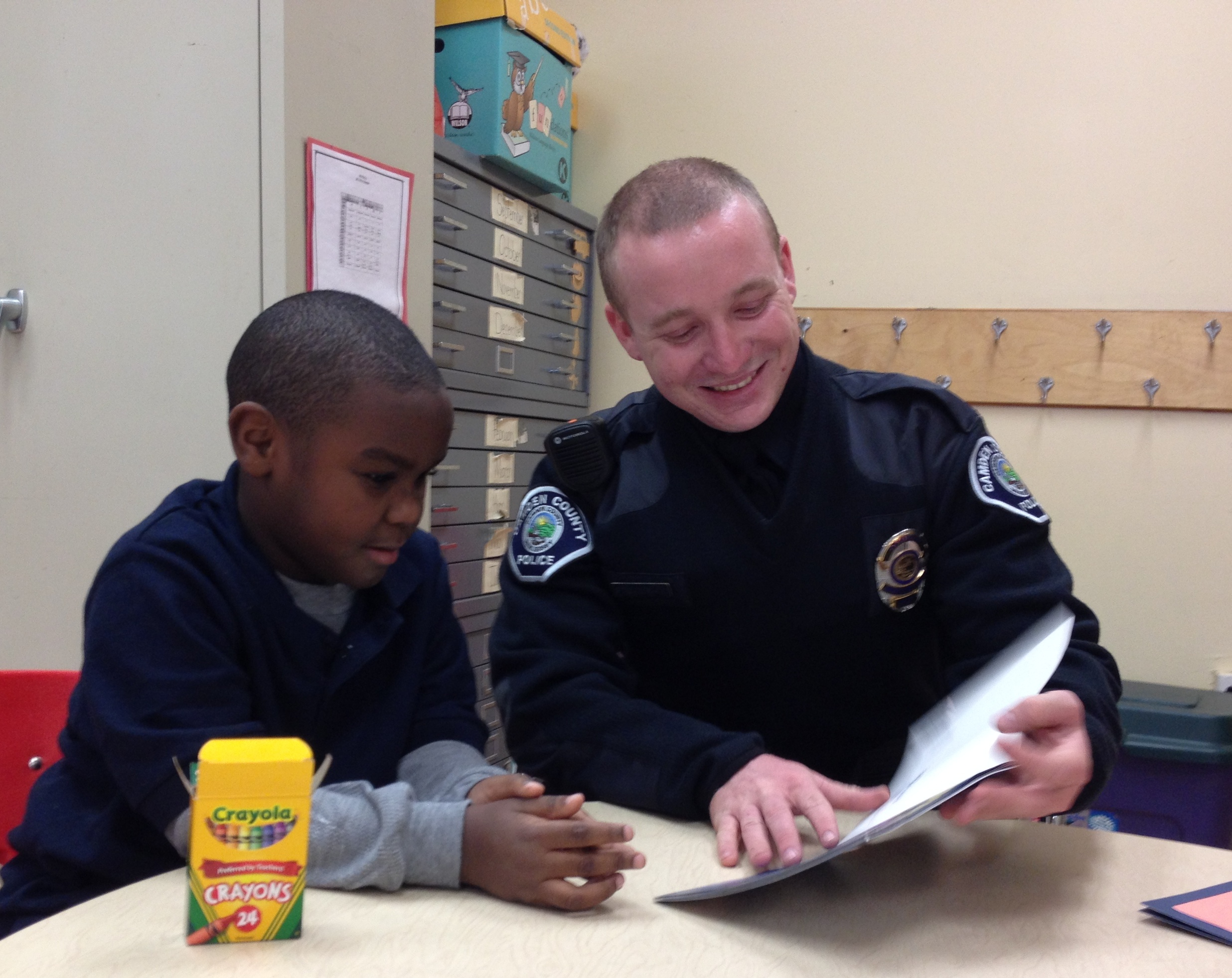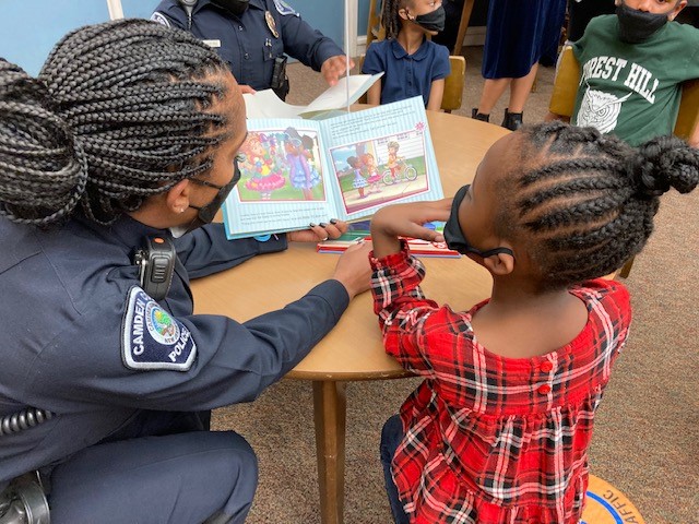 This partnership between the City of Camden, Camden County Police Department (Metro Division), Cherry Hill Police Department, Evesham Police Department and JCRC of SNJ's BookMates, police officers will be matched with kindergarten or first grade students in their own school districts. It is our desire to provide these students not only with a specially trained reading partner but also with a mentor, role model, and trusted resource.