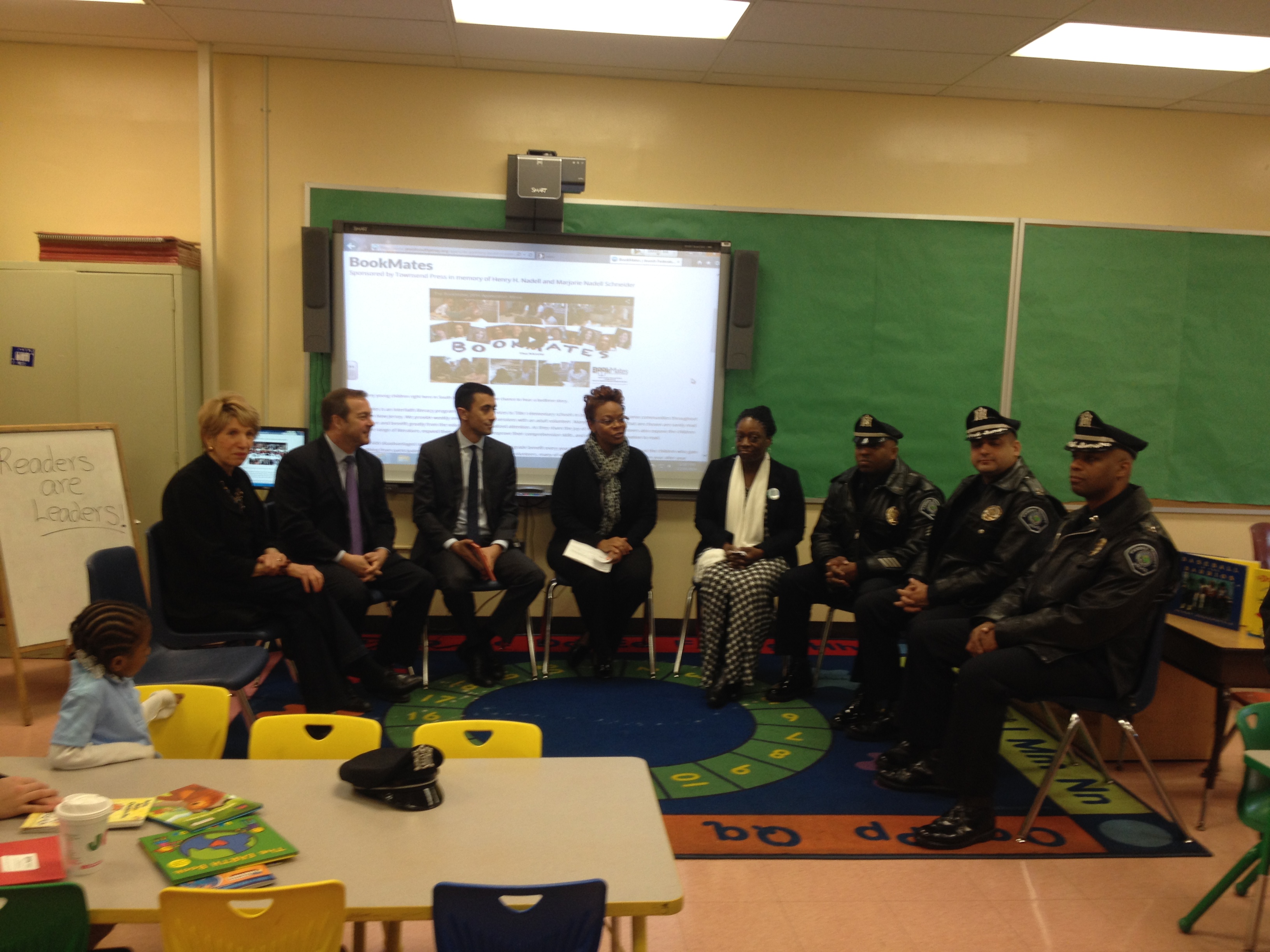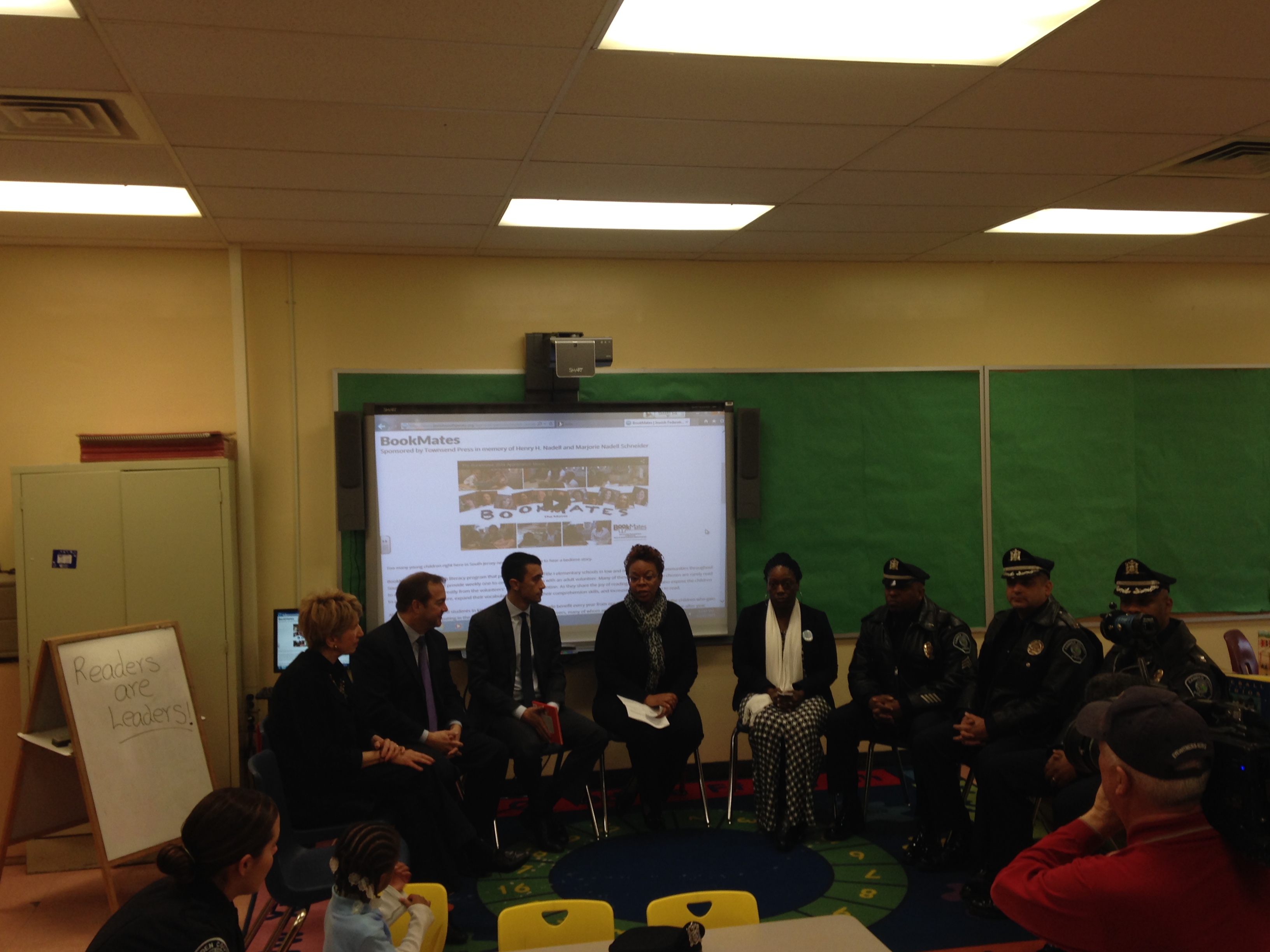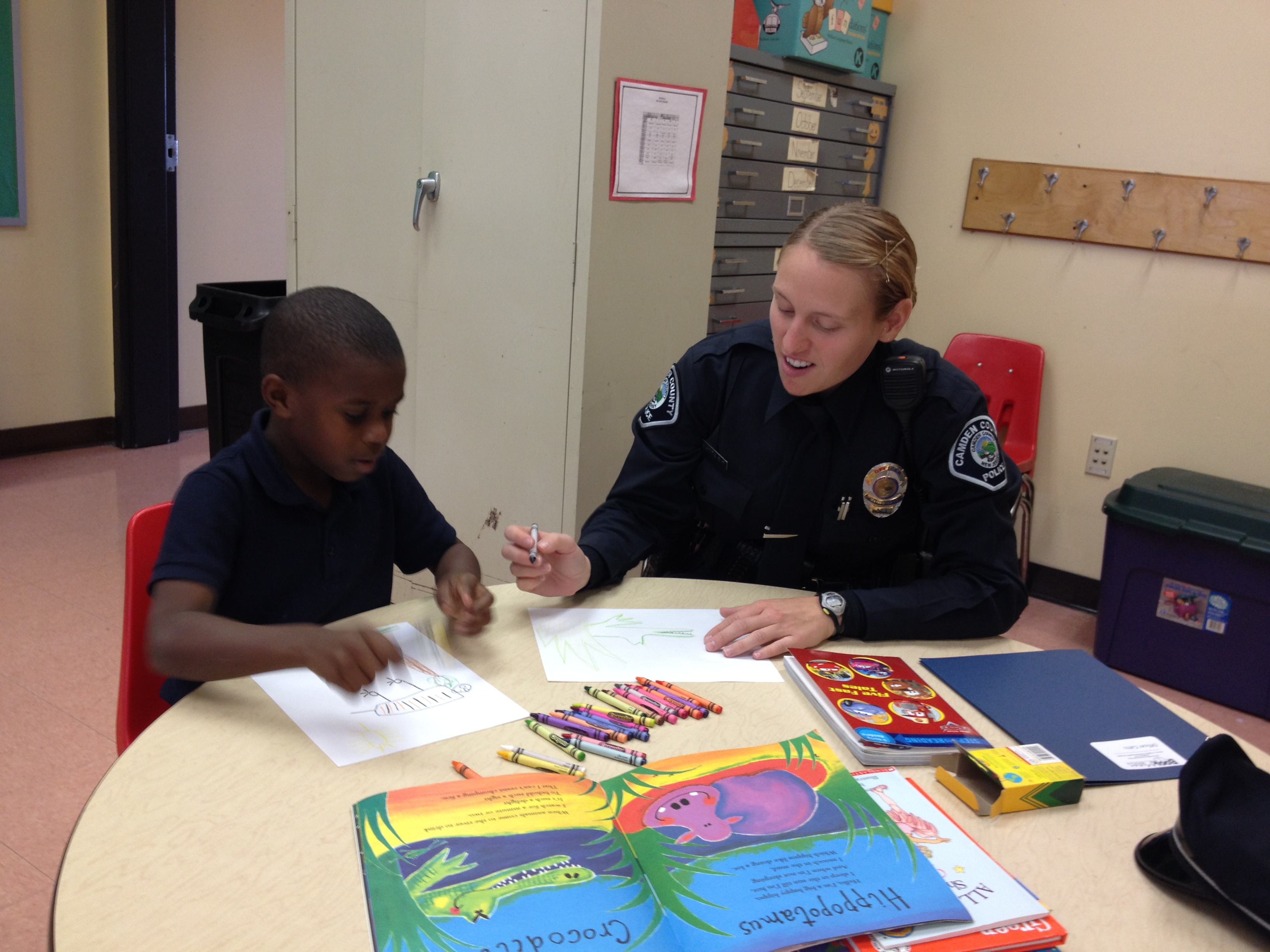This partnership between the City of Camden, Camden County Police Department (Metro Division), Cherry Hill Police Department, Evesham Police Department and JCRC of SNJ's BookMates, police officers will be matched with kindergarten or first grade students in their own school districts. It is our desire to provide these students not only with a specially trained reading partner but also with a mentor, role model, and trusted resource.